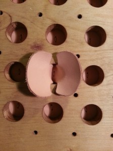 Connection of the plains to the shell. The steel pins are covered with leather.